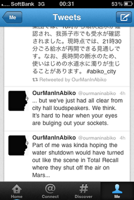 If it's not the old fellow hawking tofu around the neighbourhood, a woman screaming at the disenfranchised Our Man to vote Ta-ka-hashi vote Ta-ka-hashi, then it's a warning to look out for one of several dozen senile elderly who escape their handlers every other day, but invariably find their way back the old folks' home, coincidentally right next door to City Hall, in time for tea.