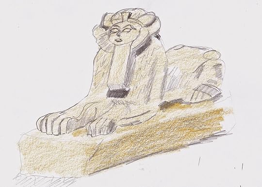 So that's exactly what Our Man and Our Youngest did today at an Egypt exhibition at the Tokyo Metropolitan Art Museum. The sphinx was the first of the day and was a bit rushed (the sketch of it, not the, er, sphinx) but we enjoyed doing the dog vase (that our Man was reliably informed by Tokyo's preeminent J-politics blogger was one of four to contain the innards of the mummified pharoah.) There were a couple of mummies, but with no seats, Our Man didn't think he could do their caskets justice, especially with the ever-present gallery guards who had marked Our Man out as a trouble-maker.
