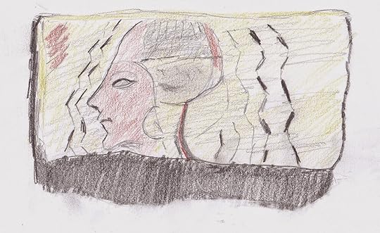 A few immediate observations: coloured pencils on sketchbook paper, as lovely as they are, show Our Man’s limitations. Also, even a slight difference in proportions can change a person’s face quite dramatically from a mean brother to a Desperate Dan. This drawing business ain’t as easy as it looks.