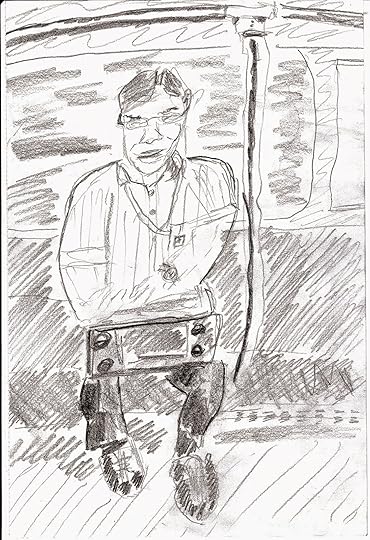 Not particularly happy with this one. You can't really tell from the way I've drawn this poor chap (whose only crime was of sitting opposite me on the Joban Line) that he was actually asleep.