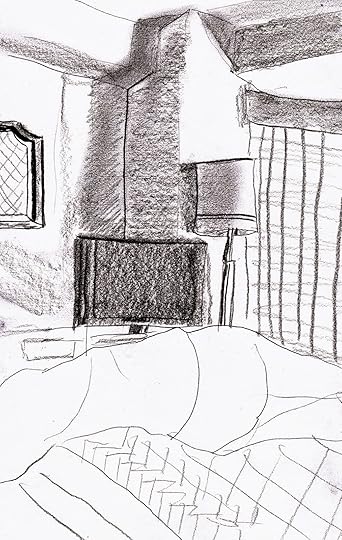 How best to draw Chinatown, Yokohama? Probably by looking out the hotel window, for a start. But Our Man woke up this morning, contented after last night’s fill of niku-man and Tsingtao beer and was taken with the way the early morning light fell between the gap between the curtains into the corner of the room. So he drew that instead of dragons and red and gold Chinesey things.