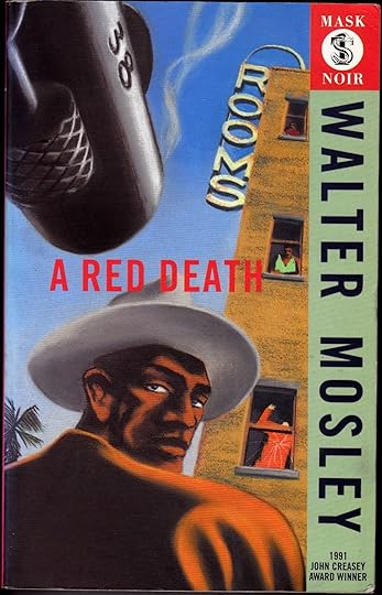 So, to that end he thought he’d experiment by copying a master, none other than Geoff Grandfield who created some brilliant artwork for Walter Mosley crime novels back in the 90s for Serpent’s Tail books (pictured below) that are on Our Man’s shelves. You might know him better for his Graham Greene covers for Penguin USA (check them out on his website, they are something else).