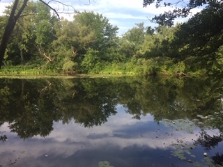 The picture is from my morning walk – the air so calm that when I first posted this I had trouble knowing which image was the earth and which the reflection. The year has reached a poise, a still point before it turns into Fall, and change. November is coming.