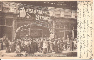 Abraham & Straus (or A&S) was a major New York City department store, based in Brooklyn. Founded in 1865, in 1929. It became part of Federated Department Stores, which eliminated the A&S brand shortly after its 1994 acquisition of WHAT TWO STORES?