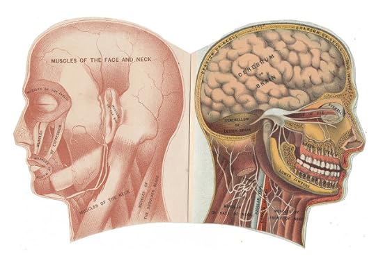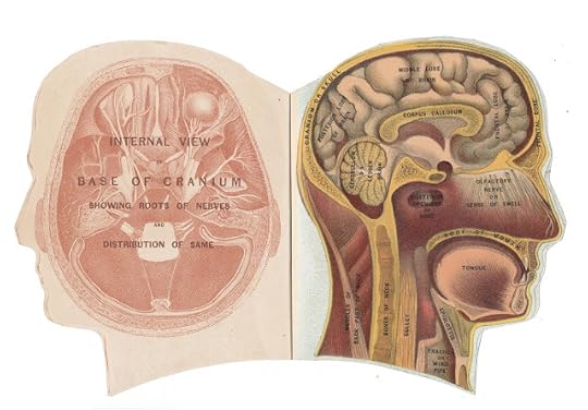 Color illustrated booklet, looks like it came out of an old medical or anatomy text book. Open up the head and you can see what's inside: