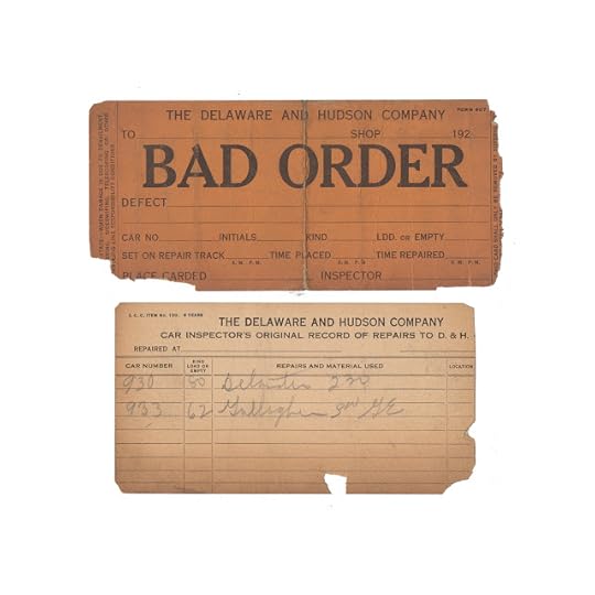 Two repair records from the Delaware and Hudson railroad, ca. 1920s.Found in "Railroad Reorganization" by Stuart Daggett. Published by Harvard University Press, 1908.
