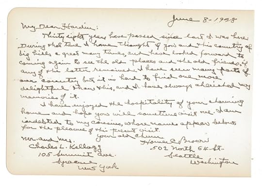 I have enjoyed the hospitality of your harming home and hope you will sometime visit me. I am indebted to my cousins, whose names appear below, for the pleasure of this present visit.