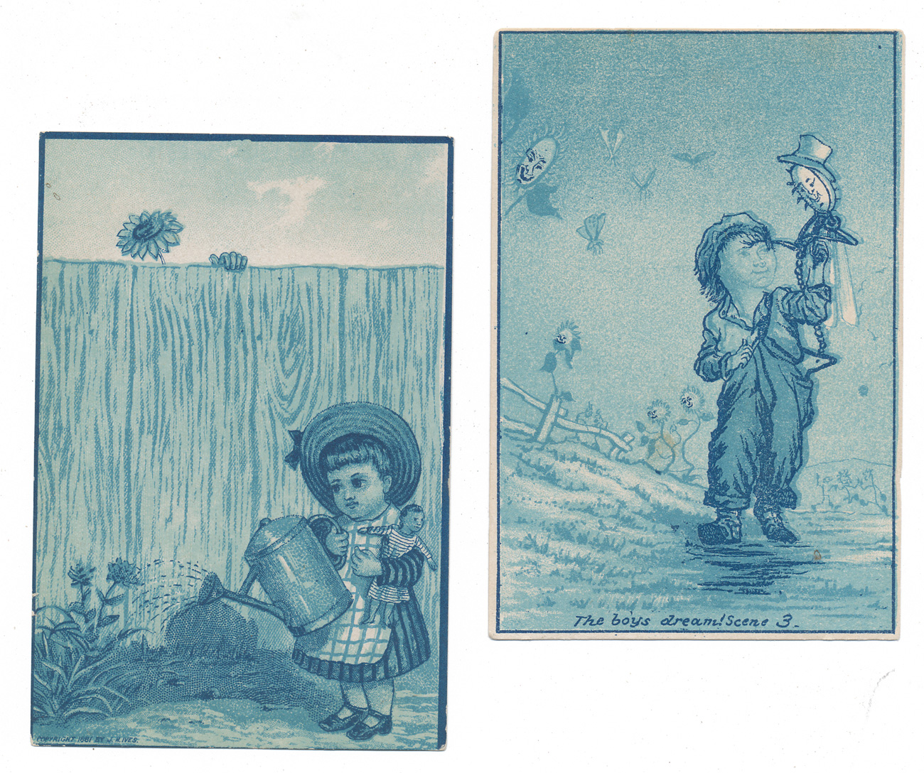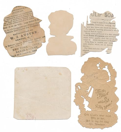 A collection of five illustrations, it looks like some came from advertisements and were trimmed. Here's a scan of the back: