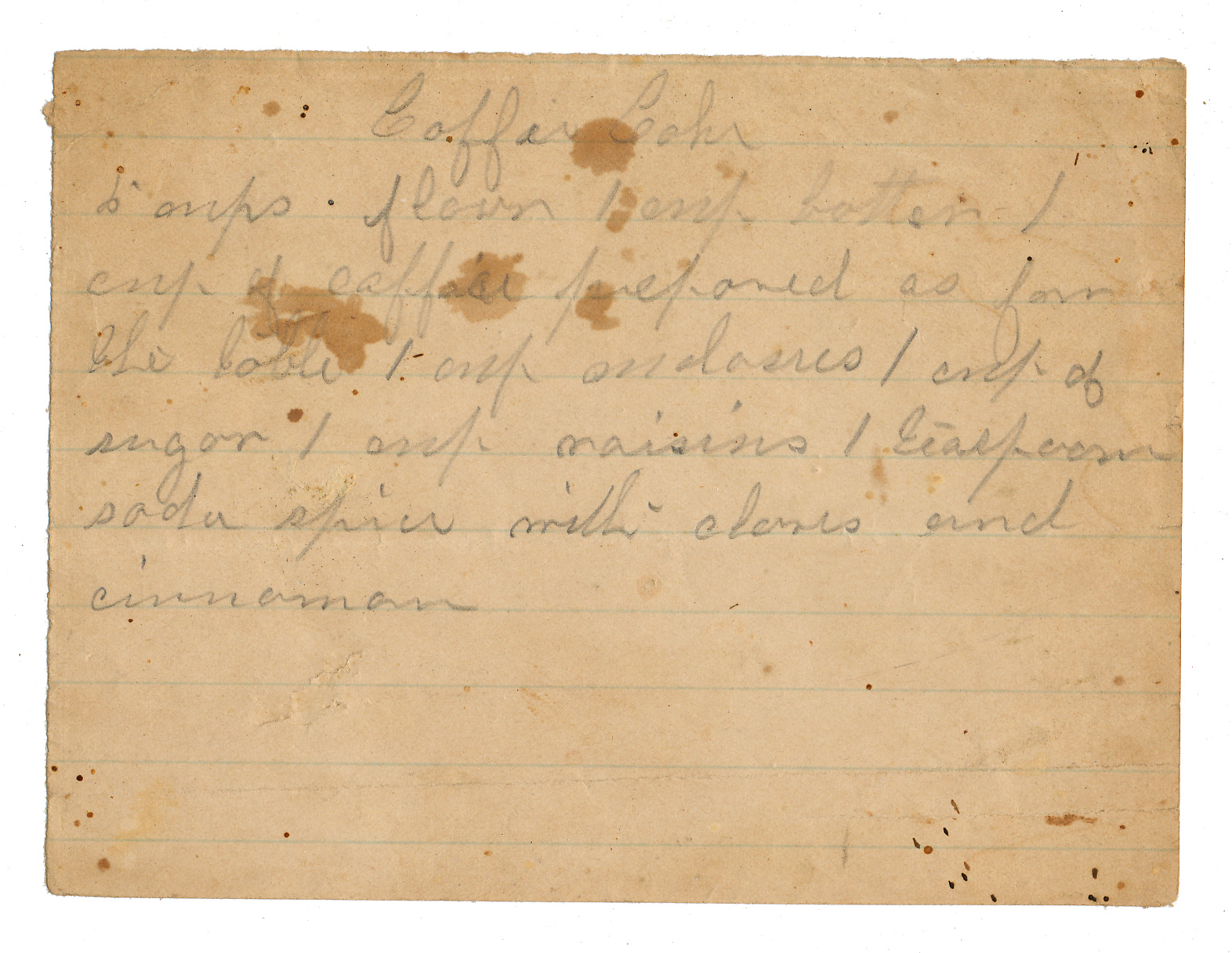 Recipe for coffee cake (I think). Some of the writing has faded a bit and is tough to make out: