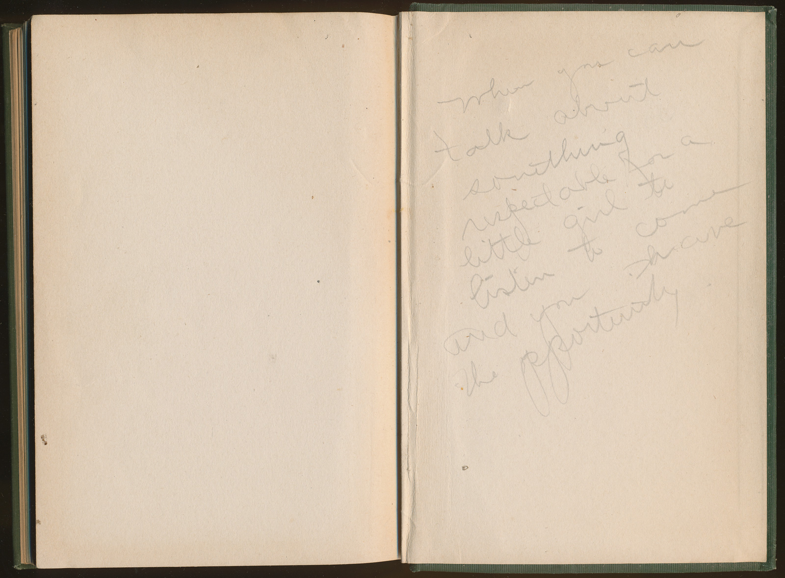 When you can talk about something respectable for a little girl to listen to come (?) and you (?) have the opportunity