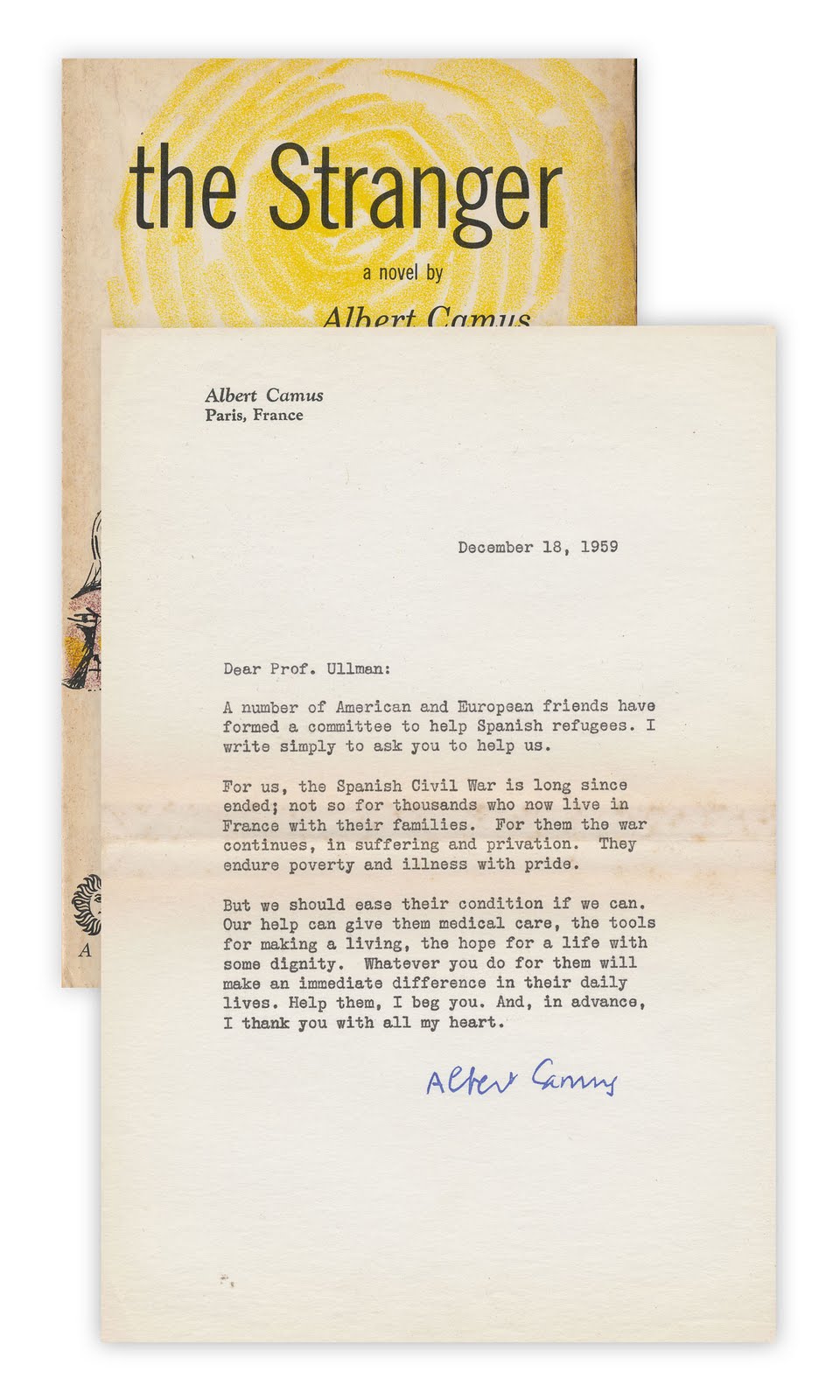 Most remarkable is the date of the letter, December 18th, 1959. Camus died in a car accident just 17 days later on January 4th.