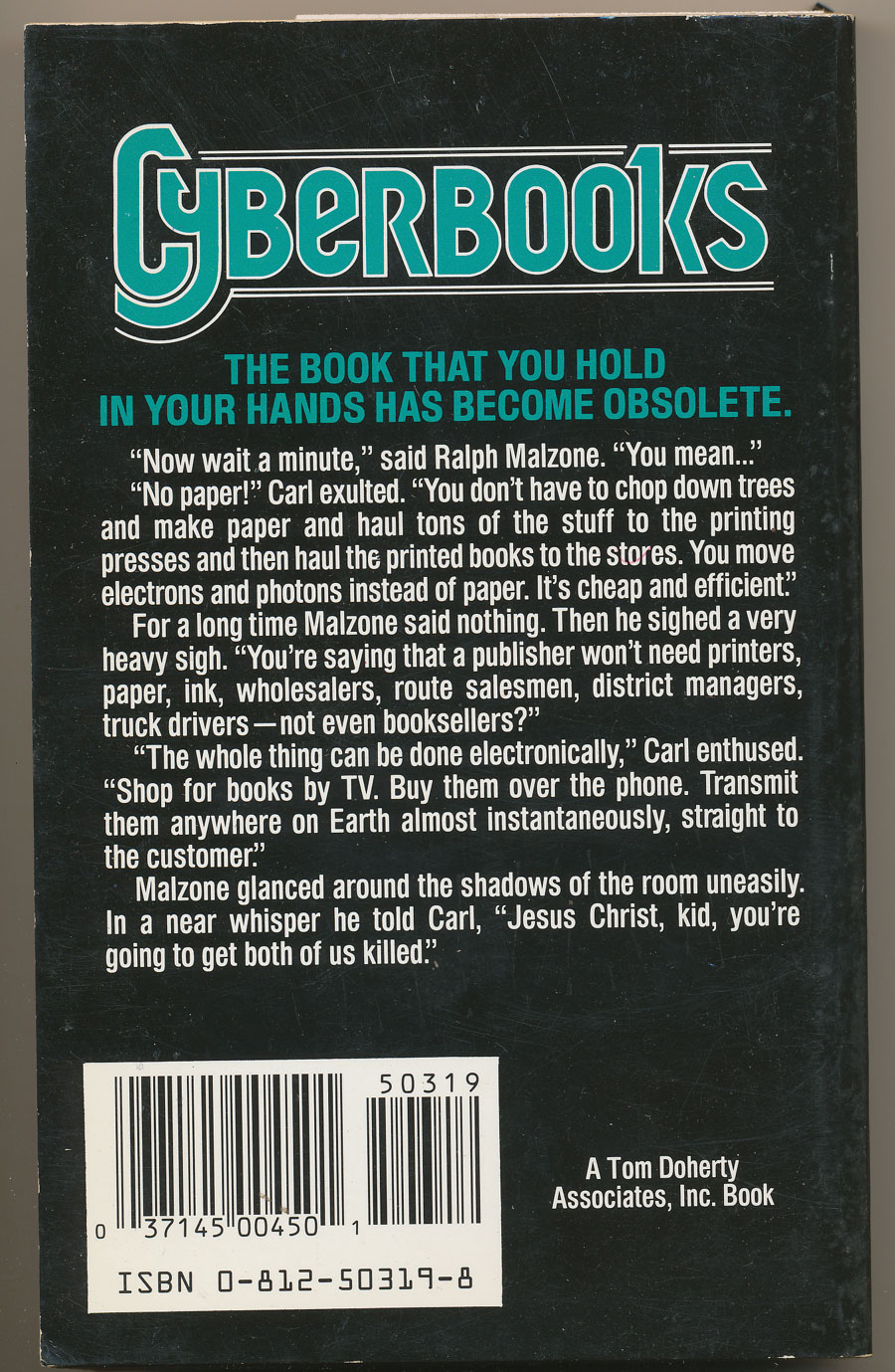 Came across this book today, thought you all might get a kick out of it. It's "Cyberbooks" by Ben Bova - from 1990:
