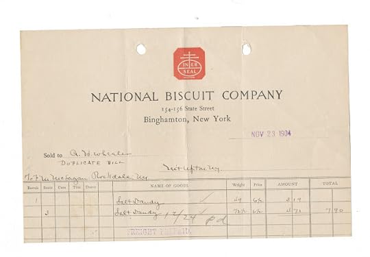 Invoice sent to A.H. Wheeler, dated 1904, from the National Biscuit Company.Found in "Elements of Electrical Engineering" by W.S. Franklin. Published by Macmillan, 1917.