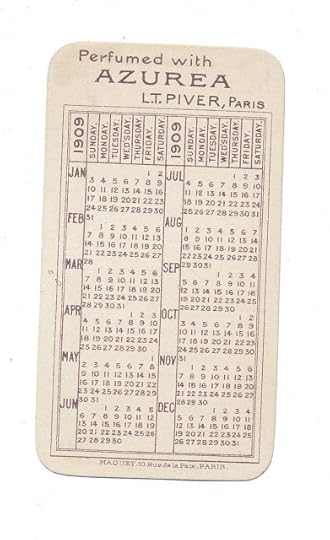 Reverse side has a 1909 calendar and indicates it is perfumed with Azurea. You can still smell it, I can best describe it as a mix of rose water and moth balls.