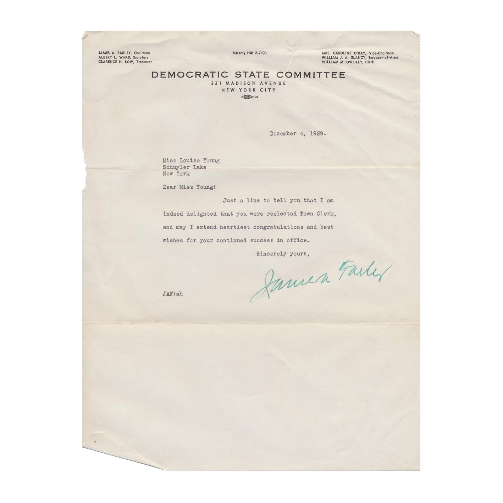 Letter from the Democratic State Committee of New York, dated December 4, 1939: