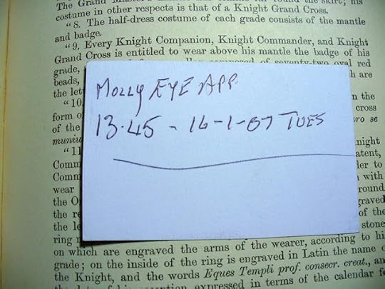 "Molly Eye App" (2007) - written on the back of an AA card in "A Lexicon of Freemasonry" (printed 1919).