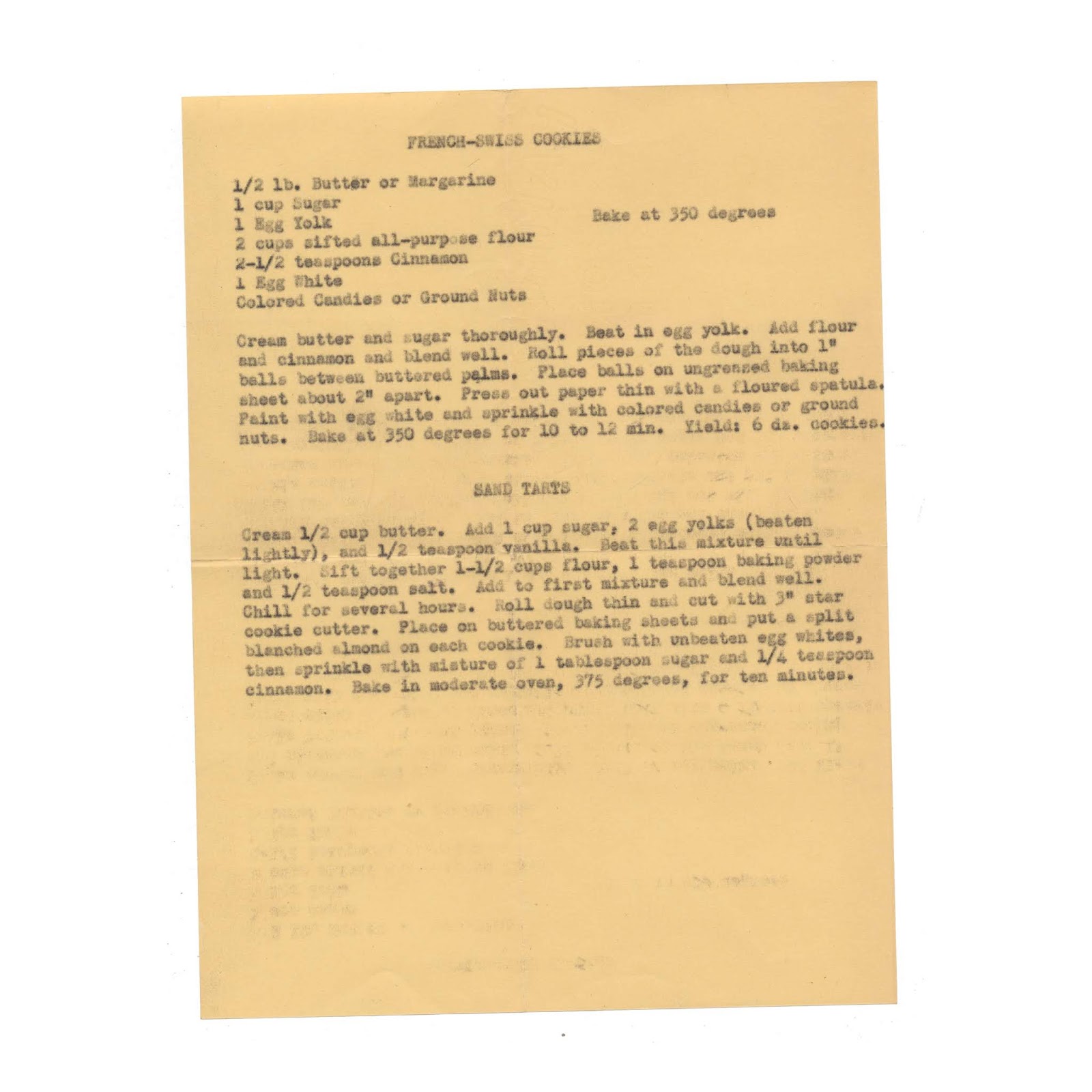 Cream 1/2 cup butter. Add 1 cup sugar, 2 egg yolks (beaten lightly) and 1/2 teaspoon vanilla. Beat the mixture until light. Sift together 1 1/2 cups flour, 1 teaspoon baking powder and 1/2 teaspoon salt. Add to first mixture and blend well. Chill for several hours. Roll dough thin and cut with 3" star cookie cutter. Place on buttered baking sheets and put a split blanched almond on each cookie. Brush with unbeaten egg whites, then sprinkle with muxture of 1 tablespoon sugar and 1/4 teaspoon cinnamon. Bake in moderate oven, 375 degrees, for ten minutes.
