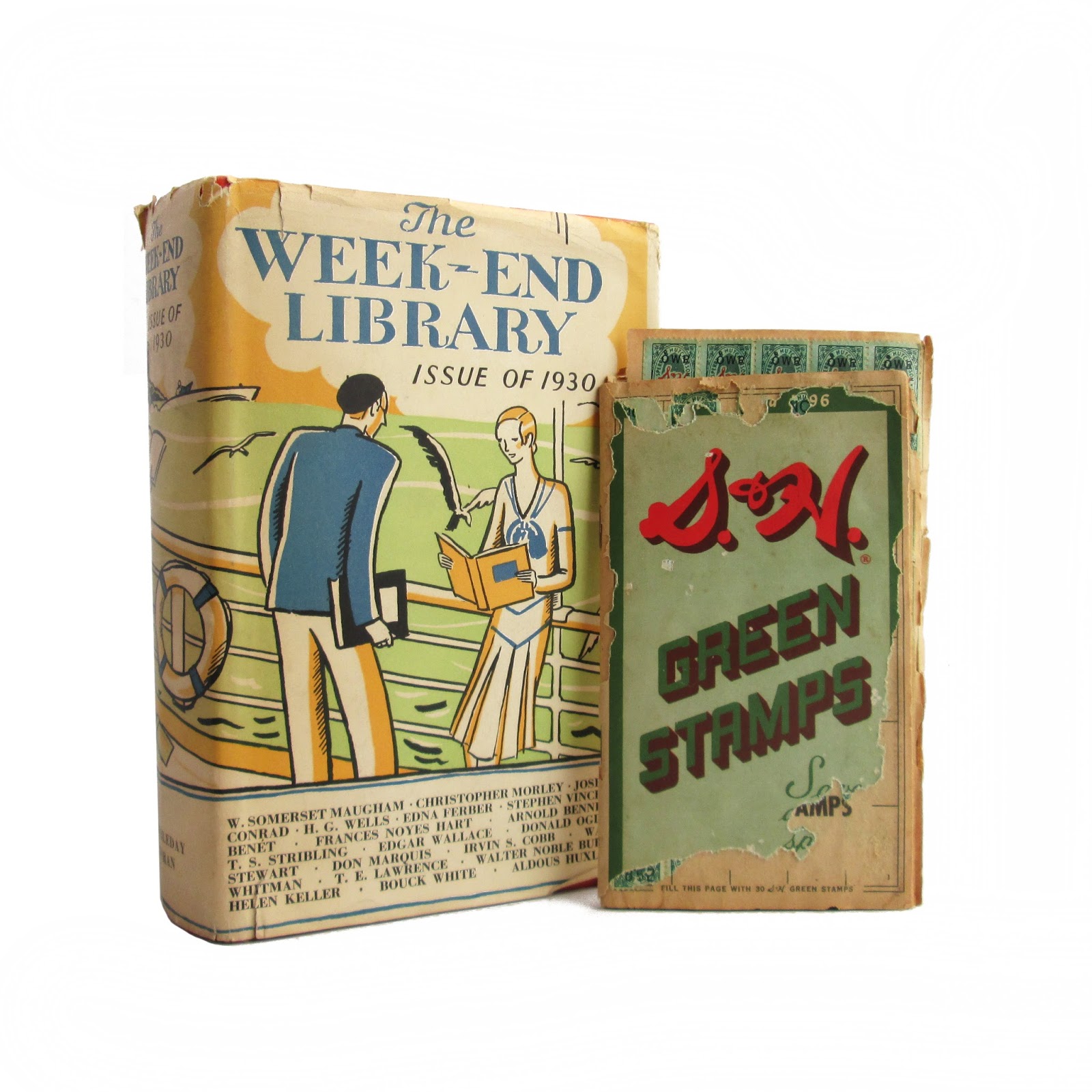 S&H Green Stamps were trading stamps popular in the United States from the 1930s until the late 1980s. They were distributed as part of a rewards program operated by the Sperry & Hutchinson company (S&H), founded in 1896 by Thomas Sperry and Shelley Byron Hutchinson. During the 1960s, the company promoted its rewards catalog as being the largest publication in the United States and boasted that it issued three times as many stamps as the U.S. Postal Service. Customers would receive stamps at the checkout counter of supermarkets, department stores, and gasoline stations among other retailers, which could be redeemed for products in the catalog.