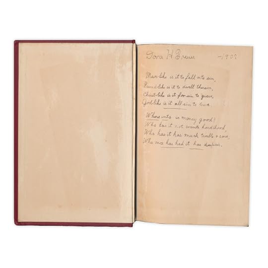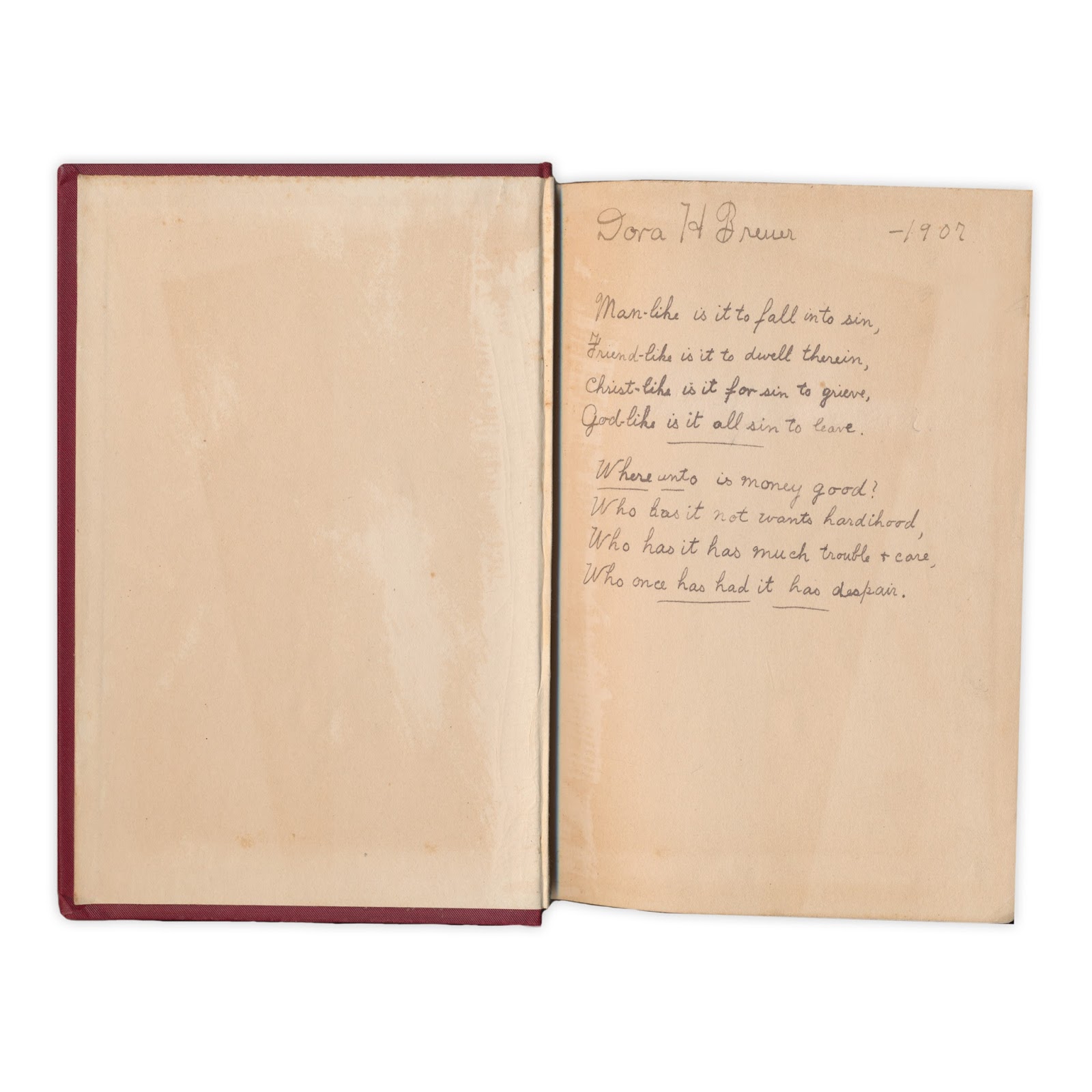 Former owner Dora H. Breuer's name and date, 1907, along with this bit of verse: