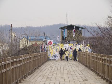 Steinem, unintentionally, highlighted the utter lack of progress. Her group wanted to walk across the four-kilometer-wide DMZ and enter South Korea at the village of Panmunjom, site of the signing of the 1953 truce, but were prevented from doing so because that activity would have been a violation of the armistice. Instead, the 30 “citizen diplomats” were bused across the zone at another crossing point, and they walked only after clearing the last South Korean checkpoint.