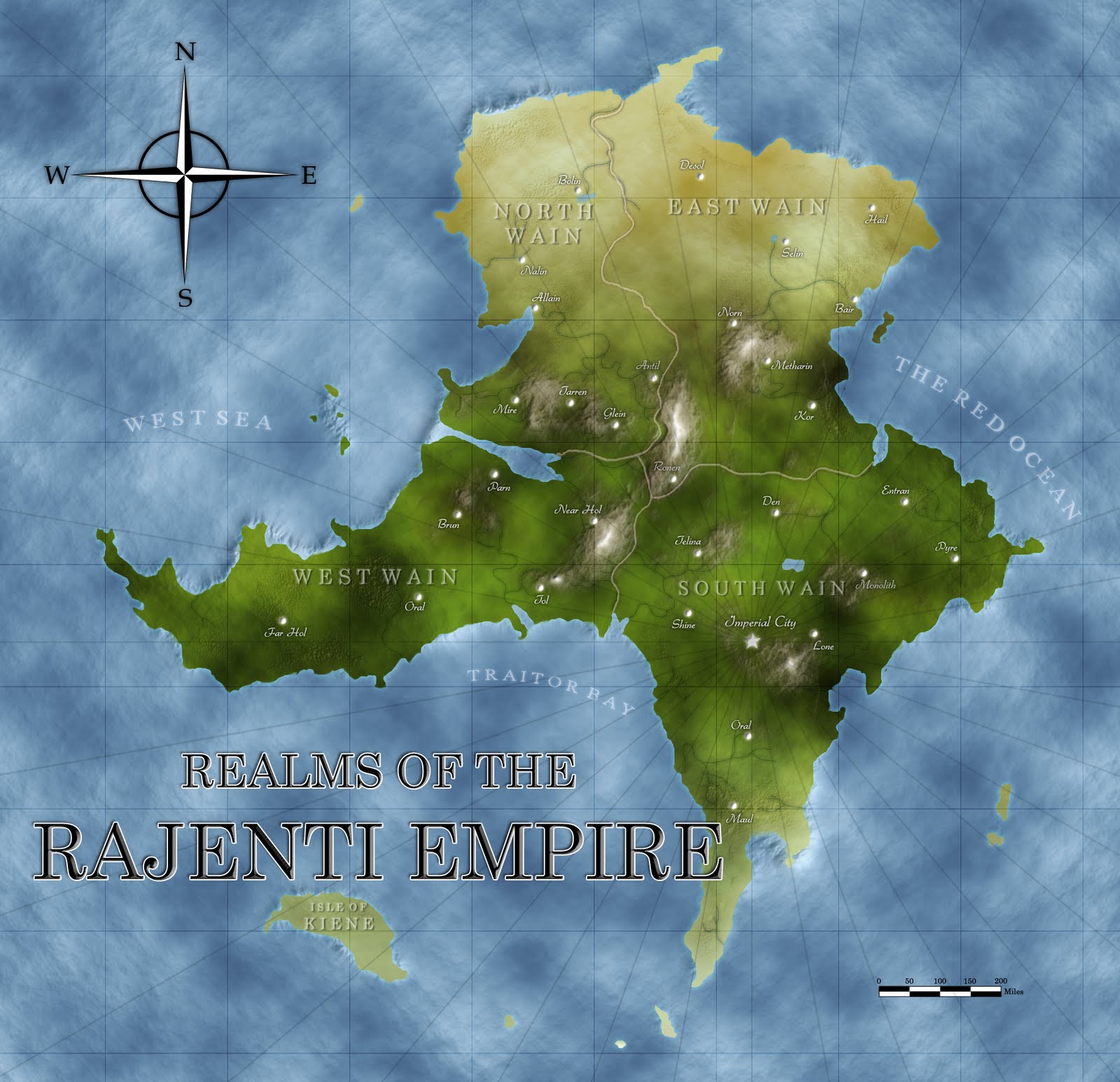 But since I am publishing the draft of FALSE GODS as an online serial as I write, I decided it would be wise to have a map available to assist people as they read. I considered just going with a rough sketch, but that wouldn't do the world justice, so I decided to dust off my meagre Photoshop skills and see what I could come up with. Here's the finished result (click for a bigger picture):