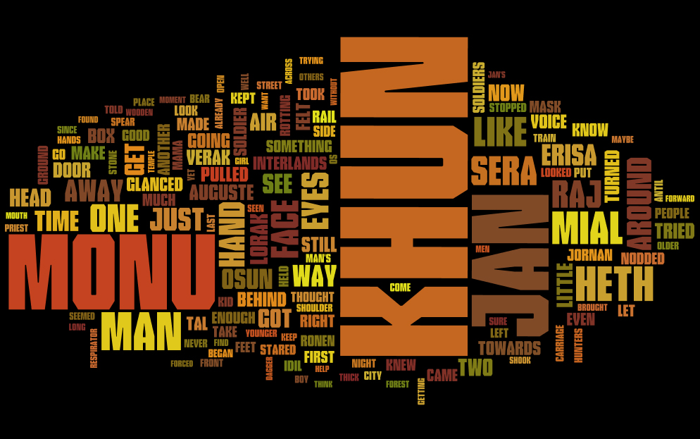 To celebrate me hitting the 30k mark on my upcoming fantasy novel, FALSE GODS, I've made a Wordle cloud of the novel so far. Take a guess who the main characters are. (grin)