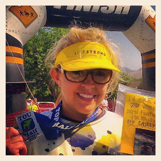 On August 25, 2012....I lost my Dad to C.L.L. an incurable form of cancer. Since 2006, I have been fundraising for cancer research in honor of BOTH of my parents and their cancer battles. My 15th half marathon was run on the day that my Dad passed away (picture above). I cried most of the race, knowing that I was not going to be able to save his life. He was not expected to make it through that weekend and he passed away a few hours after I completed the run.