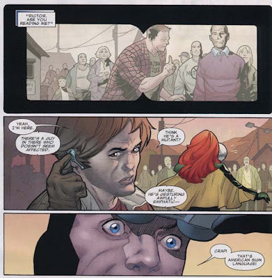 After Jamie Madrox is resurrected after his night of 1,000 deaths, him and Layla Miller embrace in a way that might make you blush. That was last issue. In this issue? It becomes apparent that Layla has become Jamie's new slam piece. And no, there's no nicer way I could have put that. As Madrox often does, he's having a whole internal debate about how wrong the whole thing was and blah, blah, blah. Jamie has been attracted to Layla ever since he went to the future and she was older babe. He needs to get over himself about this, and finally deal with his gross emotional problems. To her credit, Layla is having kind of the same thoughts re: regret. But she's a little bit more honest here, admits the whole Guido-no soul thing, and ... yeah, I'll admit it. I kind of want them to get together. And let's give it up to Peter David who somehow made me feel not icky about that. It's weird how Layla is becoming my favorite.