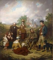 I am currently engaged in a busy series of of talks and readings from my novel Mr Stephenson's Regret about the railway pioneers. Next week is the first of a number of talks I'm doing specifically for women's groups who have shown an interest in hearing about the Stephenson women. George married three times in his lifetime and had two sisters, and son Robert also married, yet the women in these lives have been all but ignored in the histories and biographies. There is not even a single portrait of any of them - the painting I've reproduced above is a confused and idealised one of George and his family, purporting to show not only his mother Mabel standing with some vessel improbably balanced on her head but, even more improbably, two of his wives Fanny and Betty (seated) in the scene. I can assure you that George was not a bigamist. This painting was commissioned from the artist John Lucas in 1857, long after all but one of the people in the painting (Robert) had died. I can't speak for the dog.