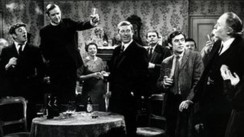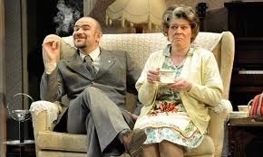 Chris Connel as Jackie, Jane Holman as Mary in the 2012 Northern Stage revival I have rarely seen a cast so versatile. Not only could they switch instantly from their anchor roles in the play to produce hilarious cameos of key figures on both sides of the miners' struggle (including a Harold Wilson so simply and effectively sketched that it brought spontaneous laughter and applause from the audience at first glance); they could also sing, dance and play music at a level on a par with their acting - guitars, bass, drums, piano, flute, penny whistle, violin, concertina, washboard and some other instrument which seemed to be some form of autoharp. They didn't always need traditional instruments either - one of the best percussion accompaniments came from Mary Milburn's knitting needles as she danced around tapping them on various parts of the set, while bottles, glasses and packing cases were all used to great effect; a veritable scratch orchestra. The songs were variously stirring, foot-tapping, comic and poignant. Of the latter Ruth's lament for a lost baby had me in tears, while the various treatments of the title song 'Close the Coalhouse Door' summed up all the anger and bitterness that lies behind the story as it is unfurled on stage - anger which we are rightly left with in spite (or perhaps because) of all the fun and laughter we've enjoyed at the Milburns' golden wedding celebration.