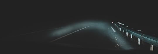 His GPS announced that he needed to turn on the next street. He made the turn. Damn, it was dark out there. No streetlights. Just trees and fog.