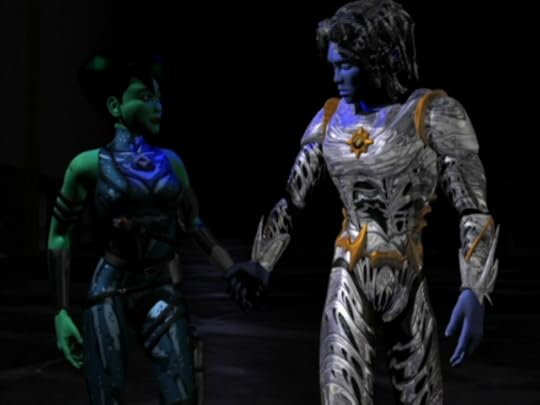 A scene from my favorite Cartoon of all time "ReBoot". In this moment, their world is pretty much dead and destroyed, and in what might be the last moments of their lives, the two heros finally reach out for one another. Makes your heart break a little.
