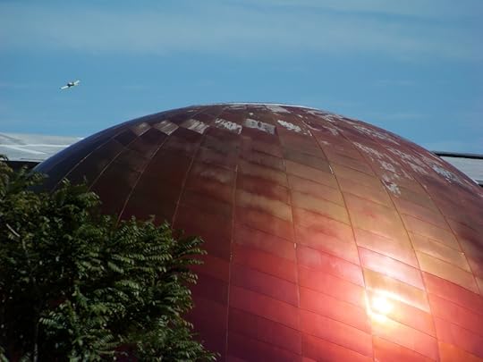 Apparently no one bothered to test any of those colors to see if they were weather-proof at all. As you can see in the photos below, entire panels of the building's facade are stripped clean of the lauded paint color. Elements, they is harsh.
