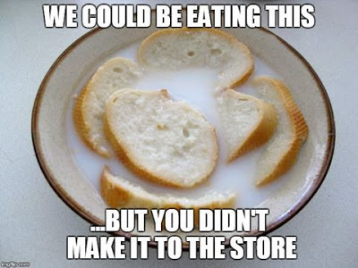 I made a huge mistake yesterday by shopping at the local supermarket when the forecast called for snow. The place was packed with people struggling to buy enough toilet paper, milk and other staples to last them the next three months.