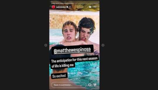 Bieber hinted at something big coming for fans. "The anticipation for this next season of life is killing me. So excited," he said in one post while tagging longtime friend and social media superstar Matthew Espinosa.
