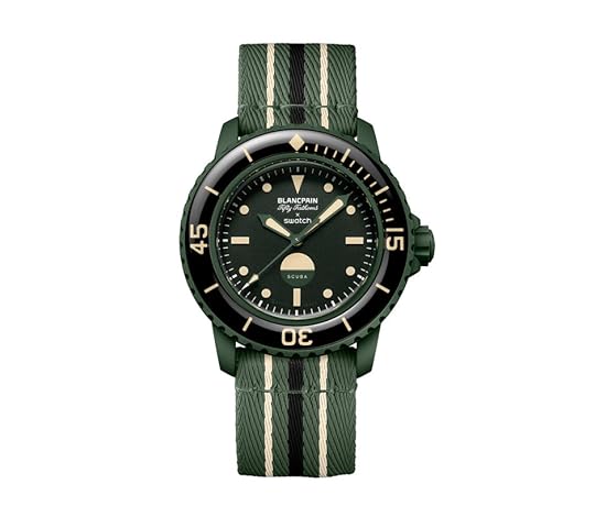 The Blancpain X Swatch Bioceramic Scuba Fifty Fathoms Green Abyss is priced at $400 and is available via the brand’s official website.