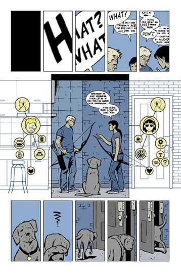 "Pizza is My Business," by Matt Fraction and David Aja, et al., in Hawkeye #11 (Marvel Comics, 2013), possibly the greatest single issue in the history of superhero comics (maybe non-superhero comics, too)—it’s like Chris Ware with heart.