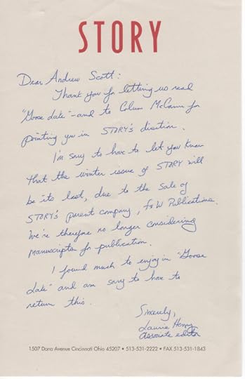 An editor at Story had written — by hand — a personal response: I like your story, but we're going out of business.