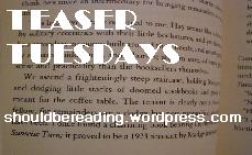 Teaser Tuesdays is a weekly bookish meme hosted by MizB of Should Be Reading. Anyone can play along! Just do the following: