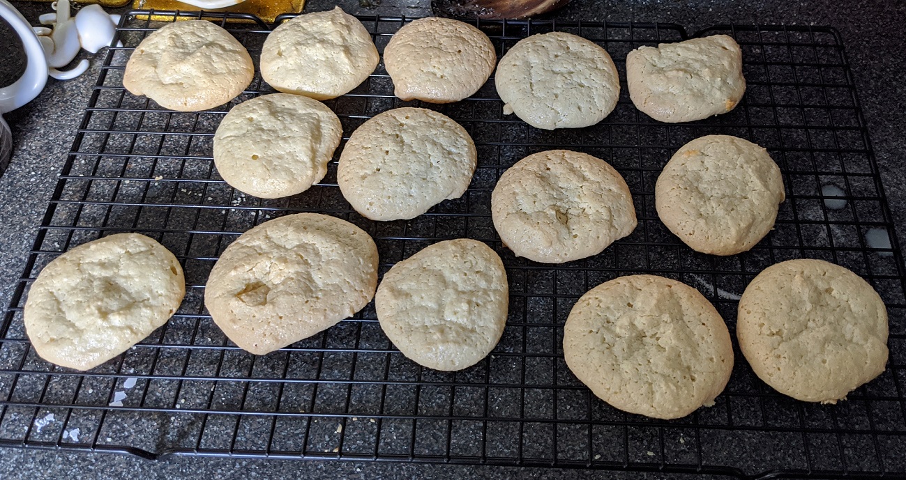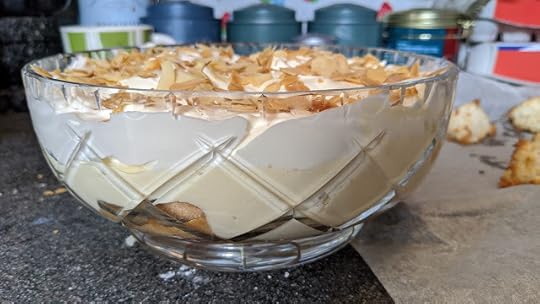 I made some ratafia biscuits (like amaretti biscuits), which are delicious, and simple, and gluten-free. And didn’t go horribly wrong! I ended up using them in Mary Berry’s pear trifle, and I even made homemade custard from scratch with egg yolks and milk to go with it. It was really worth the effort because although my rendition wasn’t the most exciting-looking trifle to have ever graced a dinner table, the mixture of almonds, pears, vanilla and cream was delicious.