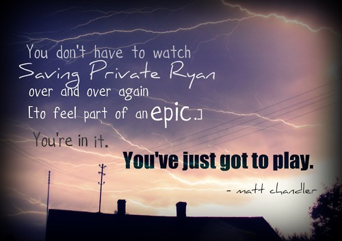 Matt Chandler said in church a couple of weeks ago, "You don't have to watch Saving Private Ryan over and over to feel part of an epic. You're in it. You just have to go play."