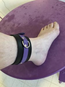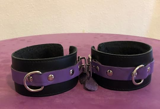 The padding makes them a little bulkier than other leather cuffs I’ve seen. That and the fact that the colorful leather strip is rather long and can dangle if they’re on tight might make wearing them while out and about a bit inconvenient–at least on the wrist. My submissive wears on them on their ankles, where they’re no problem (and where they’re discreetly hidden by socks and pants cuffs). And for playtime, the bulk and strap length aren’t a problem; if the latter got to be, I suppose the excess leather could be trimmed off.