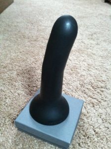 The Five come in several colors, and true to its simple and non-biorealistic design, none of them resemble any “flesh tone”. I choose the matte black because it matches my harness. The purple is also attractive and matches my partner’s cuffs, and there’s a rose pink for those whose taste runs that way. I’m only a little disappointed they don’t come in bi pride colors like some toys do.