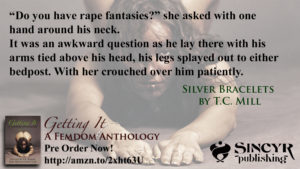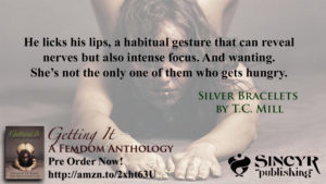 To whet your appetite, you can read more about the stories in the anthologies on SinCyr Publishing’s blog. I’ve also shared longer excerpts from my stories, “Silver Bracelets” and “Fantasies,” on this site. Enjoy!