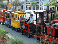 Finally, when my legs have turned into a gelatinous substance and my ears began to bleed, we escaped by taking the escalator downstairs. I could no longer stand the brightly illuminated floor above, which now from below seemed so white and peaceful. Like a slice of heaven. But I already knew what kind of hell was going on up there. Making our way through the lower level, we did not expect any more drama. No. No drama. Only murder. As we turned the corner and headed through what looked like a “main street” of the mall, I heard whistling behind me. Not the kind you’re thinking. This was nothing flirtatious. It was more like a whistle from a train engine you buy at the toy store. Great! I thought to myself. Now, we’ll be followed with some more parents and their six children, who just got a toy train and will be whistling at our backs with it until we move out of the way. As the noise got louder and annoying, I turned around to politely tell them to shut the hell up, and OH SHIT! There was a train coming at me! Who the fudge puts a train in the mall? What is this—a carnival? There was an actual train, with a toothless conductor in blue overalls, pulling and tugging on a string connected to a whistle. As I stood there, mesmerized and frozen to the floor, he gave out a gummy grin and rang the bell. Round One! In the blue corner we have a conductor with no need for a mouth-guard, and in the red corner we have a woman falling into a tunnel-vision. If my sister-in-law hadn’t pulled me aside, I would have been knocked out by a train. I glared at the conductor and then at the happy children waving at random strangers from the wagons.