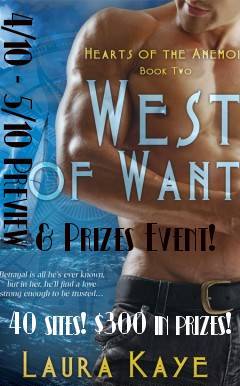 "Laura Kaye’s captivating writing and vibrant world-building will have readers hooked on the gods of the Anemoi. WEST OF WANT is steamy, spellbinding, and a must-read for all romance fantasy fans." ~Elisabeth Naughton, author of the Eternal Guardians seriesWEST OF WANT BLURB: