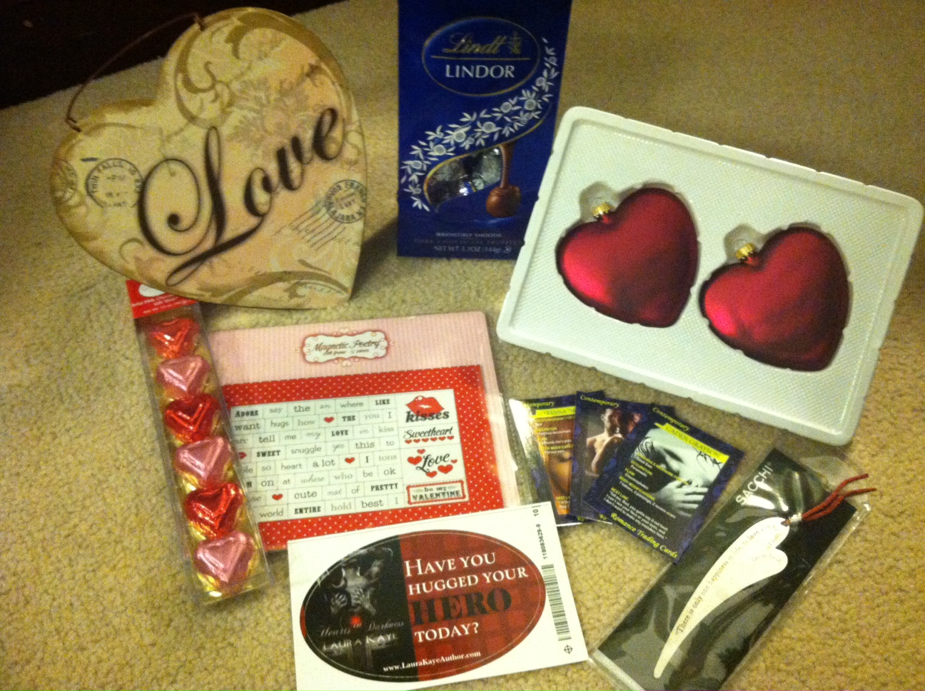 HEARTS GIFT SET #1Dark chocolate, milk chocolate hearts, heart ornaments, engraved heart bookmark, heart decoration, hearts/love magnet set, Hearts in Darkness sticker and romance trading cards (1 of 3 remaining sets I have! (out of 1000))--WINNER: BUFFY KENNEDY