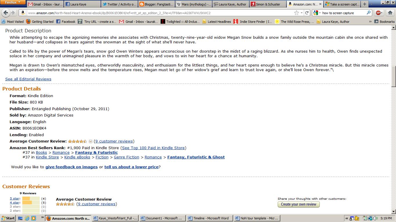 Thrilled doesn't begin to describe how I'm feeling right now, as NORTH OF NEED hit not one but two Amazon bestseller lists today, just 11 days after release! The sales rank started dropping yesterday, down from its already good average ranking around 10-12K, to 8500, then 7500, then 5300, then 4200. This morning, I woke up to 6500, but was excited it was still lower than it had been. Then my fantastic Entangled Publishing publicist Danielle Barclay started emailing me with more drops: 3500, 2400. Meanwhile, I'm in a jam-packed Toys R Us with my girls, buying them reward toys for letting me write for three hours this morning without killing each other or destroying the house, squeeing every time Dani sent me a new message! We get home from the toy store, I assemble one Disney Princess Tea House set and one Monster High School bunk bed set, then head to the computer, to find a sales rank of 1900 and two bestseller lists: