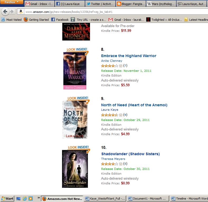 NORTH OF NEED is also on Amazon's Books > Hot New Releases in Fantasy and Futuristic Romance list, currently at #9, just below, you know, Sherrilyn Kenyon, Lara Adrian, and Anita Clenney. O.o Boggles!