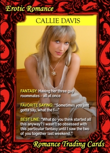 So, what do you think? Hope you enjoyed! If that wasn't exciting enough, I also received my new Romance Trading Cards for this book: